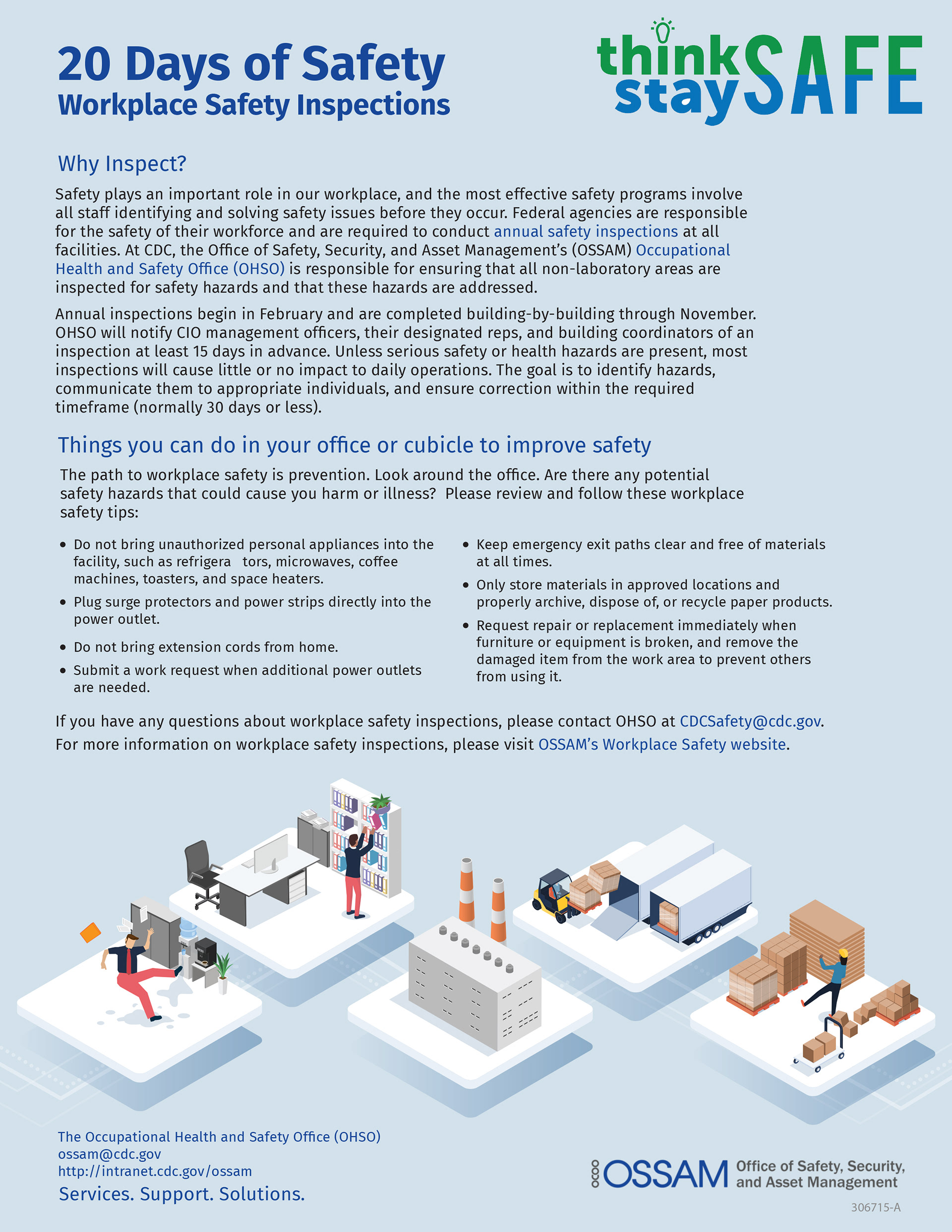 The path to workplace safety is prevention. Look around the office. Are there any potential safety hazards that could cause you harm or illness? Please review and follow these workplace safety tips: